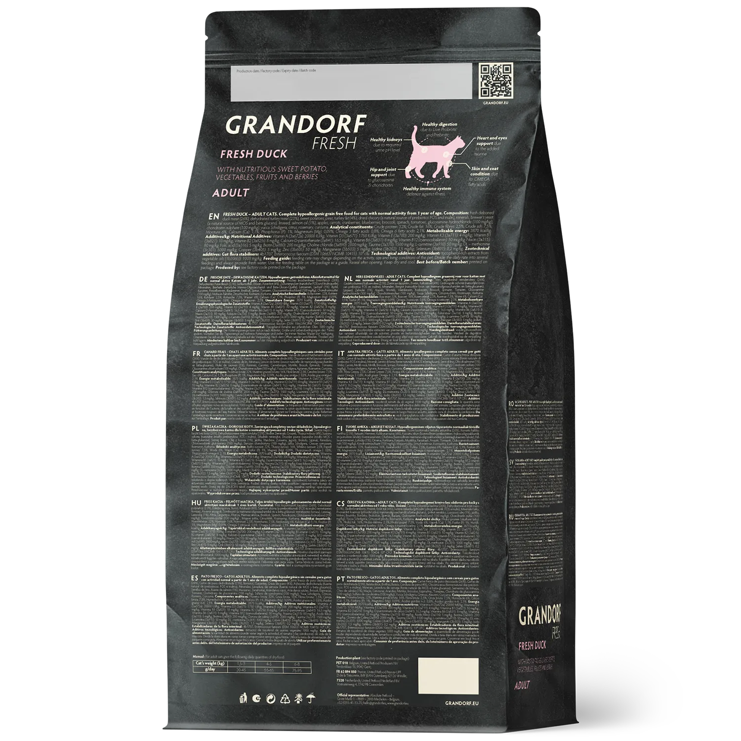 Hrana uscata pentru pisici Grandorf, cu Carne de Rata Proaspata si Cartofi Dulci, pentru Pisici Adulti