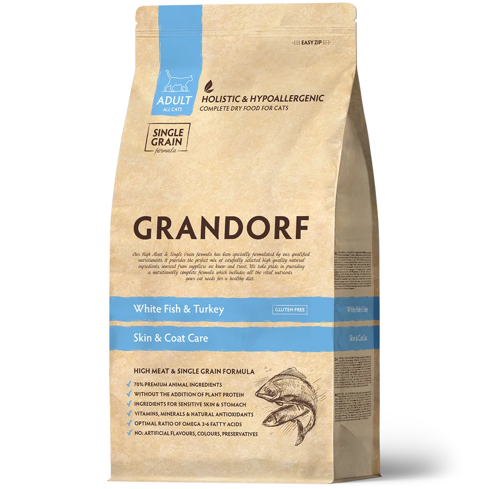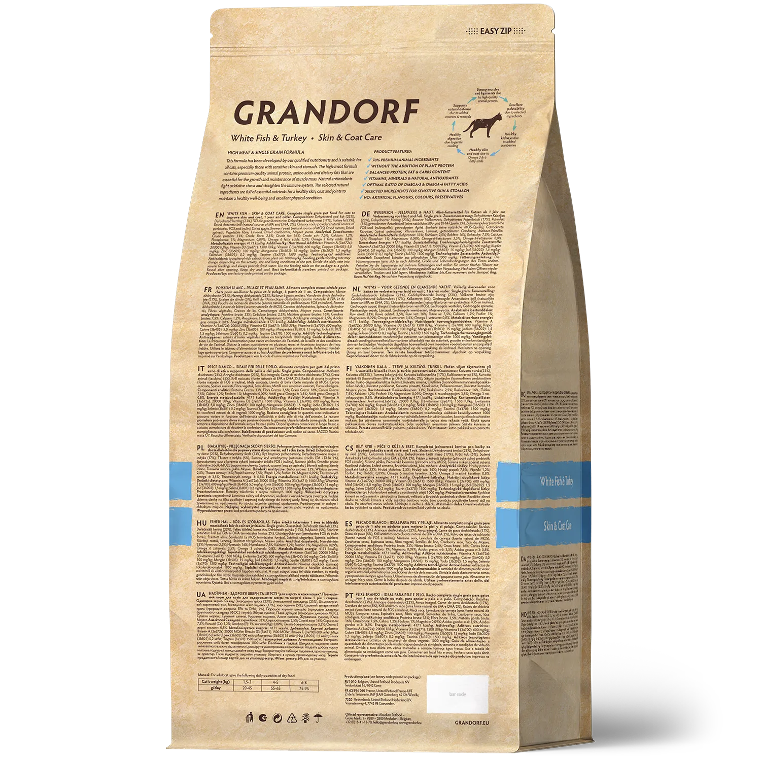 Nu conține: porumb, grâu, sfeclă, mazăre, organe interne, ouă, pui, grăsime de pui, sare, zahăr, coloranți, arome, soia și organisme modificate genetic (OMG-uri).