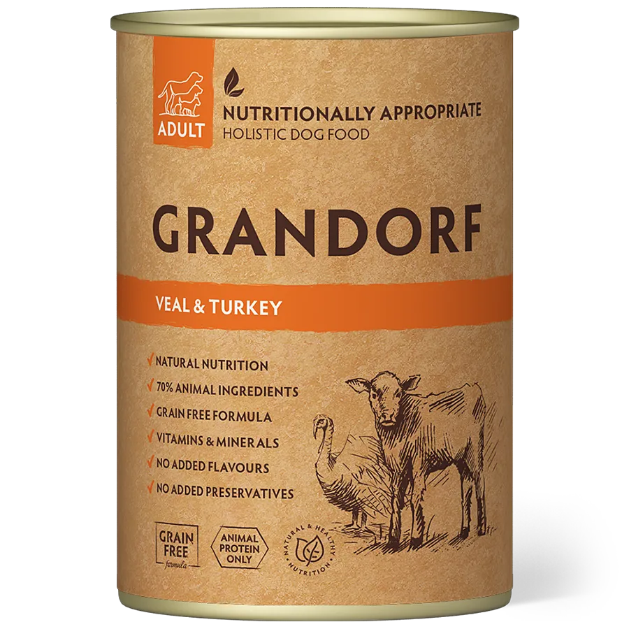 Hrana umeda pentru câini Grandorf, Vitel si Curcan, pentru câini adulti