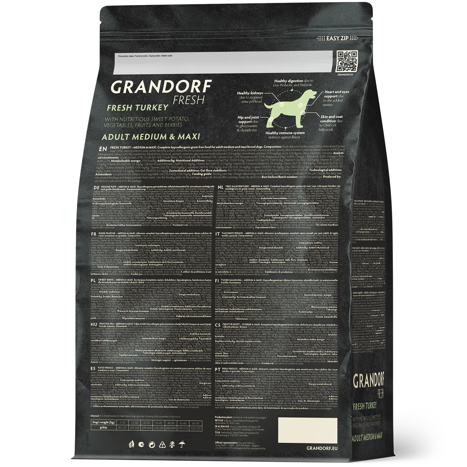 Hrana uscata pentru câini Grandorf, Carne proaspata de curcan cu cartof dulce, pentru rase medii si mari