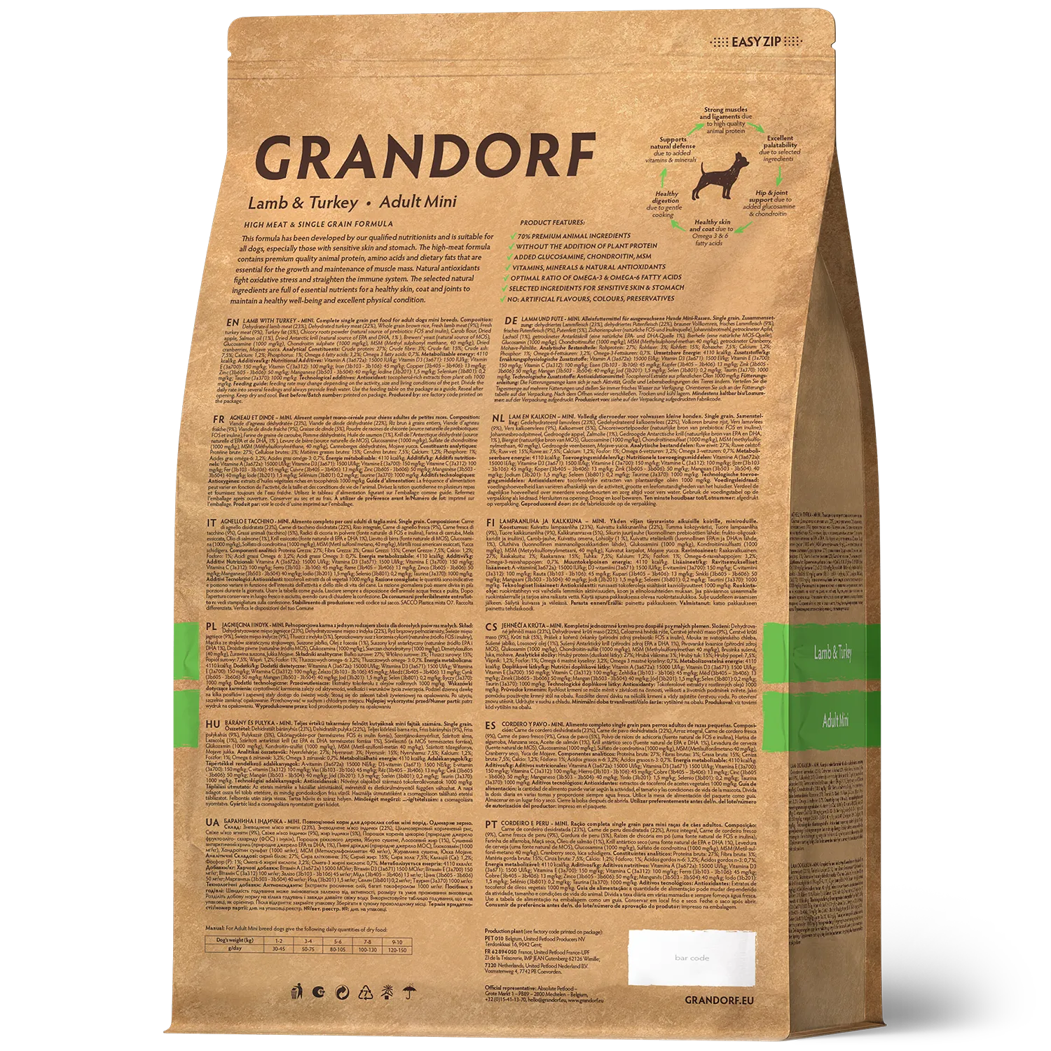 Hrana uscata pentru câini Grandorf, Miel si Curcan, pentru câini adulti de rase mici