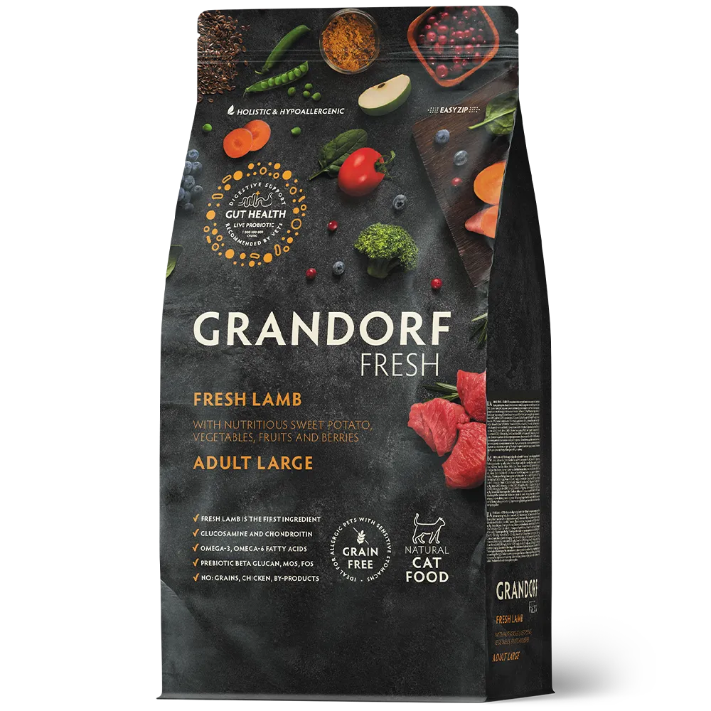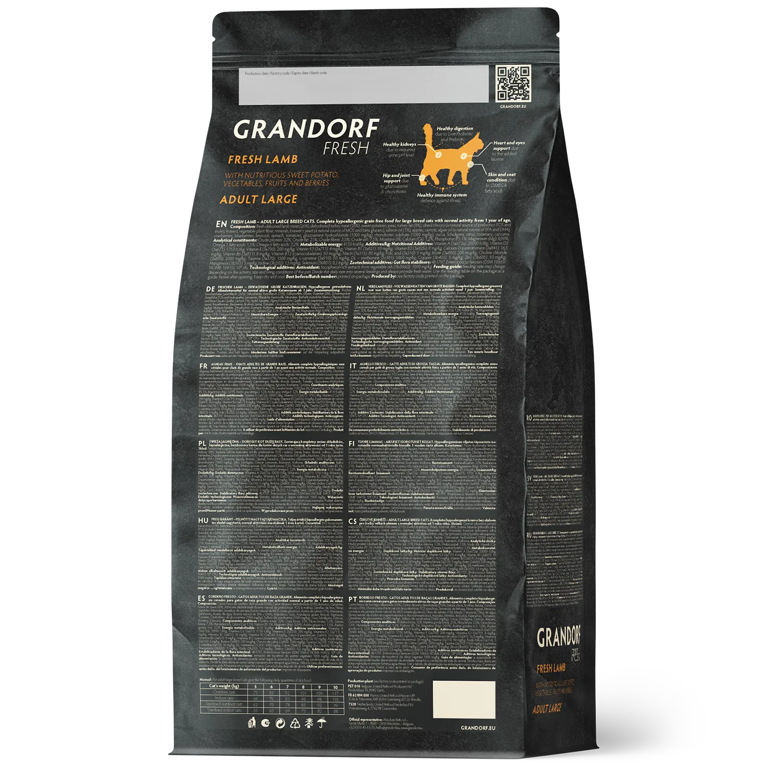 Hrana uscata pentru pisici Grandorf, cu Carne de Miel Proaspata si Cartofi Dulci, pentru Pisici Adulti Rasa Mare