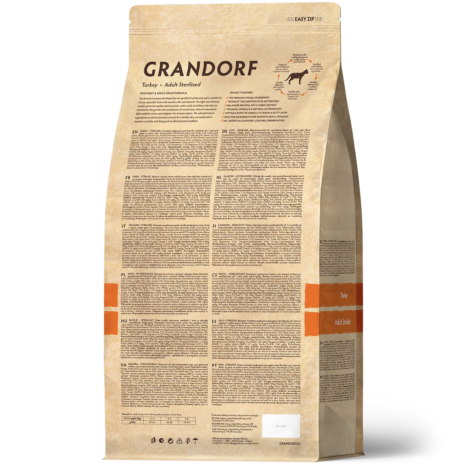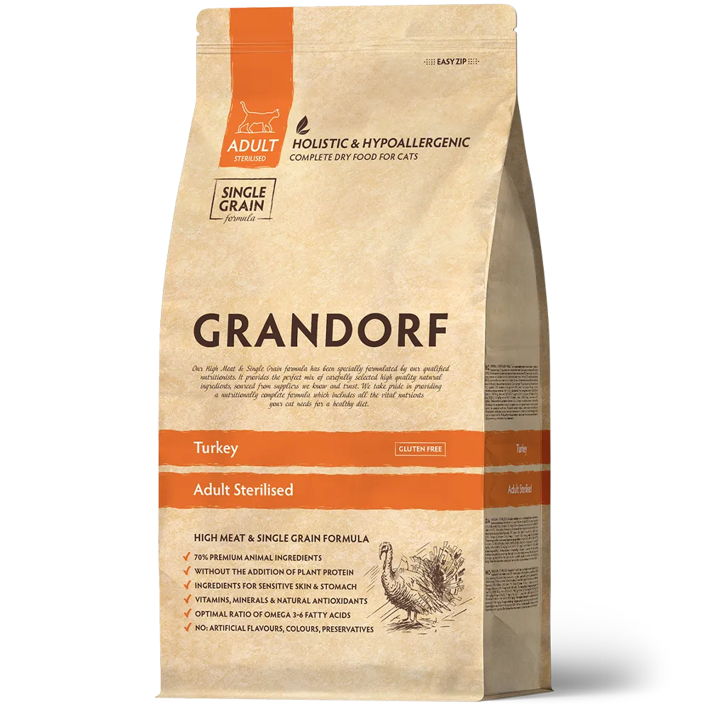 Hrana uscata pentru pisici Grandorf, cu Curcan, pentru Pisici Adulti Sterilizate