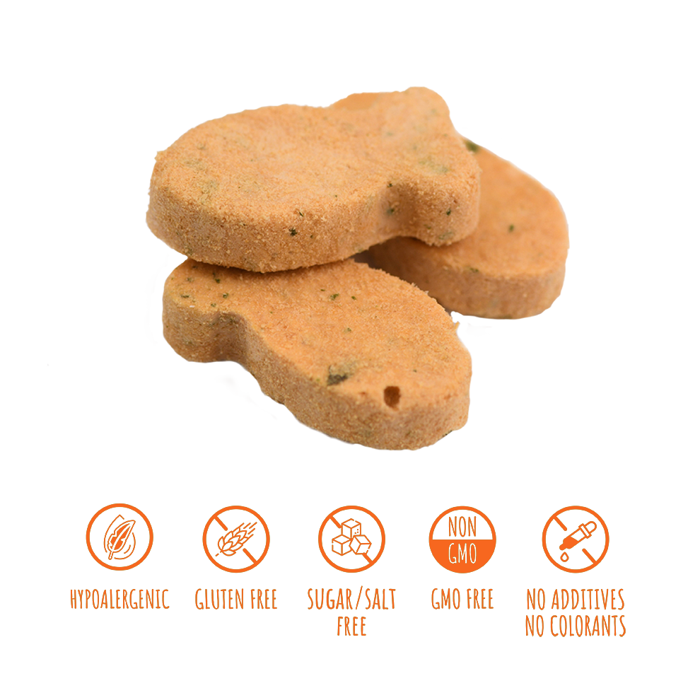 Imaginează-ți că iei masa la un restaurant gourmet elegant, servit un carpaccio de somon feliat delicat, accentuat cu frunze de spanac proaspete și fragede. Acest amestec armonios de texturi, aromă delicată și bogăție naturală creează o încântare culinară de neuitat. Carpaccio de somon cu spanac liofilizat Mavsy este mai mult decât o simplă delicatesă - este o experiență gastronomică sofisticată pentru câinele tău. Ușor, crocant și aromat, este perfect atât ca răsfăț zilnic, cât și ca recompensă specială. Potrivit pentru câini adulți de toate rasele și căței de la 3 luni. Somon: Proteine de înaltă calitate și acizi grași Omega-3 pentru a întări mușchii, a hrăni pielea și a spori strălucirea blănii. Spanacul: Bogat în vitaminele A, C, K și antioxidanți puternici care stimulează imunitatea. Lapte praf: Bogat în calciu pentru dinți puternici și oase sănătoase.