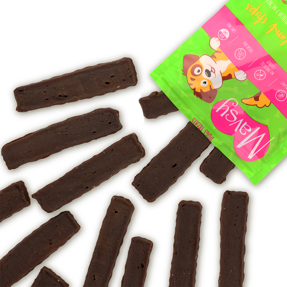 Dacă aceste chipsuri de carne ar fi servite într-un restaurant, ar fi apreciate pentru textura lor delicată și aroma bogată de carne – perfecte pentru gustări între mese. Ușor de împărțit în bucăți mici, acestea ar fi, fără îndoială, răsfățul ideal pentru micii gurmanzi în orice moment. Chipsurile Mavsy din carne de miel sunt gustări gustoase, fragede și perfect practice, create special pentru sesiuni de dresaj și plimbări active. Nu se sfărâmă, nu sunt lipicioase la atingere și sunt ușor de digerat, făcând sesiunile de dresaj plăcute și eficiente atât pentru tine, cât și pentru companionul tău blănos. Miel – o carne ușor digerabilă, nutritivă, care susține sănătatea și energia. Piept de pui – o sursă excelentă de proteine, care stimulează activitatea și rezistența.