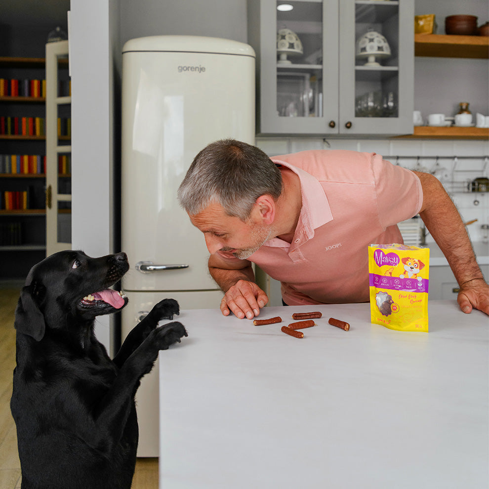 Dacă o cafenea pentru câini ar servi aceste recompense, cu siguranță le-ar descrie ca niște cârnați de rață fragezi și aromatici, care se topesc în gura câinelui tău. Dimensiuni perfecte pentru recompensa rapid în timpul sesiunilor de dresaj sau al jocului – delicios, convenabil și fără complicații. Cârnații de rață uscați Mavsy sunt un preparat clasic pentru dresaj, îndrăgiți de câinii de pretutindeni. Sunt ușor de desfăcut, practici de luat cu ei la plimbare, iar ingredientele lor naturale, combinate cu o textură moale, îi transformă într-o gustare fantastică de zi cu zi. Rață – oferă proteine și grăsimi benefice, promovând sănătatea musculară, energia și o blană strălucitoare.