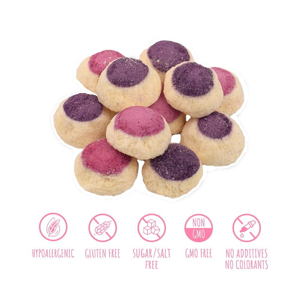 Imaginează-ți un desert rafinat servit la un elegant bistro italian — o panna cotta captivantă prin textura sa mătăsoasă, bogăția cremoasă și accentele proaspete de fructe de pădure. Fiecare lingură oferă un echilibru delicat între ușurință, dulceață naturală și rafinament, care încântă de la prima gustare. Panna Cotta liofilizată Mavsy cu iaurt și fructe de pădure nu este doar o delicatesă — este un desert gourmet creat cu grijă pentru câinele tău. Perfectă ca delicatesă zilnică sau recompensă specială, este potrivită pentru câini adulți de toate rasele și pui de la 3 luni încolo. ⏵ Iaurt: Bogat în probiotice pentru a susține o floră intestinală sănătoasă și a ușura digestia. ⏵ Fructe de pădure (afine, zmeură, căpșuni): Antioxidanți naturali care stimulează imunitatea și protejează celulele. ⏵ Lapte praf de oaie: Sursă de calciu, întărește oasele și dinții. ⏵ Proteine pe bază de plante: Mențin tonusul muscular și energia
