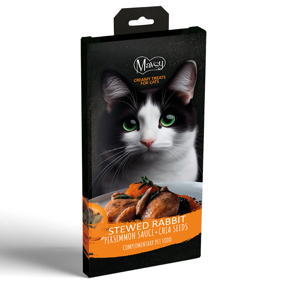 Composition: iepure 25%, hidrolizat de ton 3%, semințe de chia 1%, ulei de semințe 1%, amidon de tapioca 0,8%, gumă de guar 0,5%, caragenan 0,3%. Aditivi nutriționali pentru hrana animalelor: metionină, vitamina A (3a672a - 160-240 UI/kg), vitamina B1 (3a821 - 0,1 mg/kg), viitamina B2 (3a825i - 0,08 mg/kg), vitamina B6 (3a831 - 0,1 mg/kg), vitamina D3 (3a671 - 14-26 UI/kg), vitamina E (3a 700-500 mg/kg), pantotenat de calciu, acid folic, cupru, mangan, zinc, iod, seleniu - 0,2%, extract de malț 0,1%, taurină 0,1%, pulbere de persimon 0,1%.